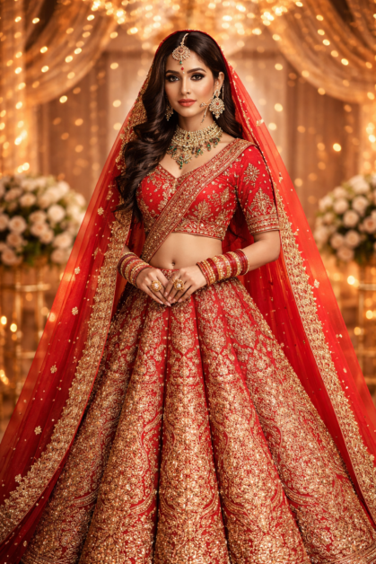 Comes with semi – stitched lehenga, un stitched choli and dupatta fabric. To have it stitched, please select the custom tailoring options.Lehenga with elaborate patterns and colors are used for photo – shoot.Color and pattern of the lehenga might not be as shown in the image.